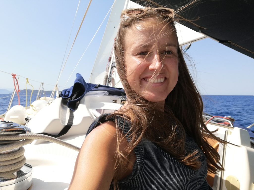 Das erreichte seinen Höhepunkt als wir auf dem Weg nach Vasiliki endlich Segel setzen konnten und in Schräglage, hart am Wind über das Wasser flogen. Wir hatten 20, in der Spitze sogar 26 Knoten Wind. Im Hafen war bereits alles besetzt, deshalb verbachte ich zum ersten Mal eine Nacht auf Anker. Den Hafen in Sicht, zu weit entfernt, um an Land zu schwimmen. Jedes Mal, wenn ich schaute, hatte das Boot eine andere Orientierung. An diesem Abend kochte ich für uns ein Abendessen an Bord. Ich fühlte mich nicht eingesperrt oder auf dem Meer ausgesetzt, sondern frei und auf dem Boot zuhause. Die anderen hatten alle mehr Segelerfahrung als ich und waren während der Reise sehr entspannt. Doch im Nachhinein sagten sie zu mir: „An dem Tag war ich nervös und habe mich am Boot festgehalten und meinen Kiefer zusammengebissen und dann habe ich zu dir geschaut und du warst ganz entspannt und hast über das ganze Gesicht gestrahlt.“