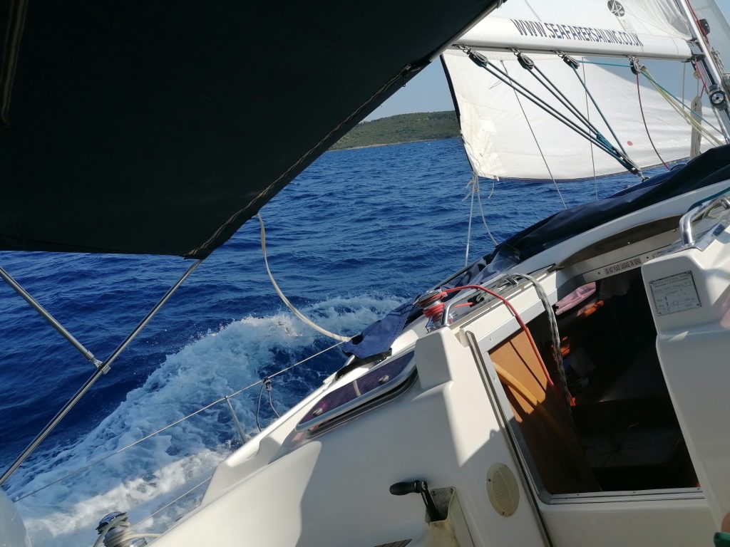 Die Armbänder trug ich nur die ersten zwei Tage. Von den anderen Medikamenten, die ich dabei hatte, machte ich überhaupt keinen Gebrauch. Alles lief bestens, ich entspannte mich mehr und mehr. Ich aß mit Appetit. Ich erweiterte auch täglich meinen Bewegungsradius auf dem Boot. Bald stand ich am Steuerrad und hielt den Kurs, und half bei Manövern. Wenn wir mit Motor fuhren und nicht segelten, setzte mich an den Bug des Bootes, wo es am meisten schaukelt. Ich trug ein breites Lächeln im Gesicht und fühlte mich eins mit der Umgebung, sog die Meerbrise ein und war tief berührt von der Schönheit der verschiedenen Landschaften.